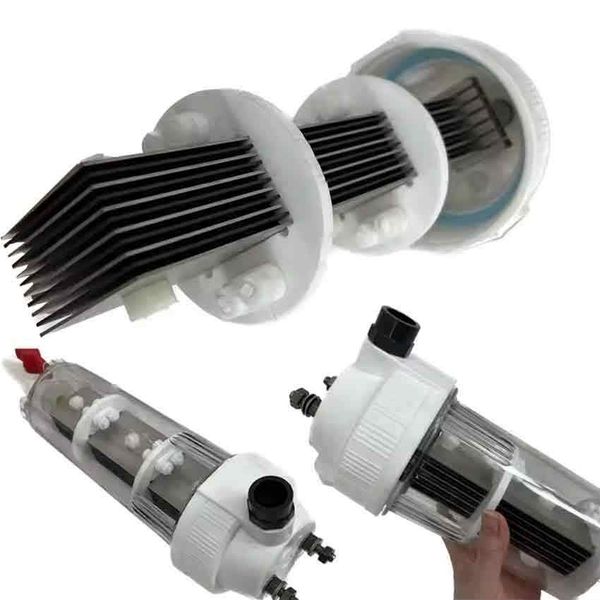 - Hệ thống khử trùng nước hồ bơi (Salt Chlorinator): Sử dụng điện cực MMO dạng lưới để tạo Clo trực tiếp từ muối ăn hòa tan, giúp nước trong suốt và không gây kích ứng da.