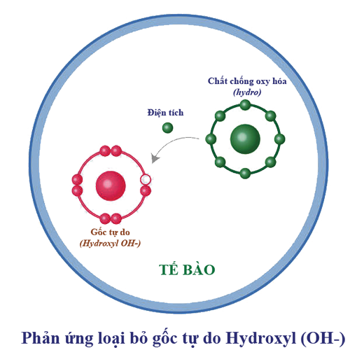 Gốc tự do hydroxyl (•OH) tuy nhỏ bé nhưng cực kỳ nguy hiểm. Bổ sung chất chống oxy hóa, đặc biệt là hydro phân tử, chính là “lá chắn tự nhiên” giúp cơ thể chống lại quá trình oxy hóa, bảo vệ sức khỏe và kéo dài tuổi xuân.