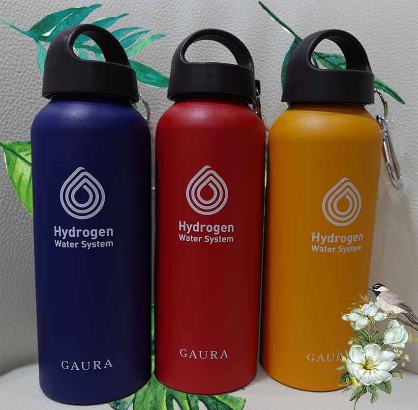Bình nước Hydro GAURA có 3 màu sắc khác nhau: Xanh, Cam, Đỏ