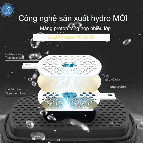 Đỉnh cao của công nghệ sản xuất hydro thế hệ mới. Máy điện phân nước hiện đại này sử dụng lưới điện phân bạch kim titan kết hợp với màng trao đổi proton để tối đa hóa khả năng giữ hydro. Nó loại bỏ clo và ozone hiệu quả, đảm bảo bạn chỉ được tận hưởng nguồn nước giàu hydro tinh khiết nhất.